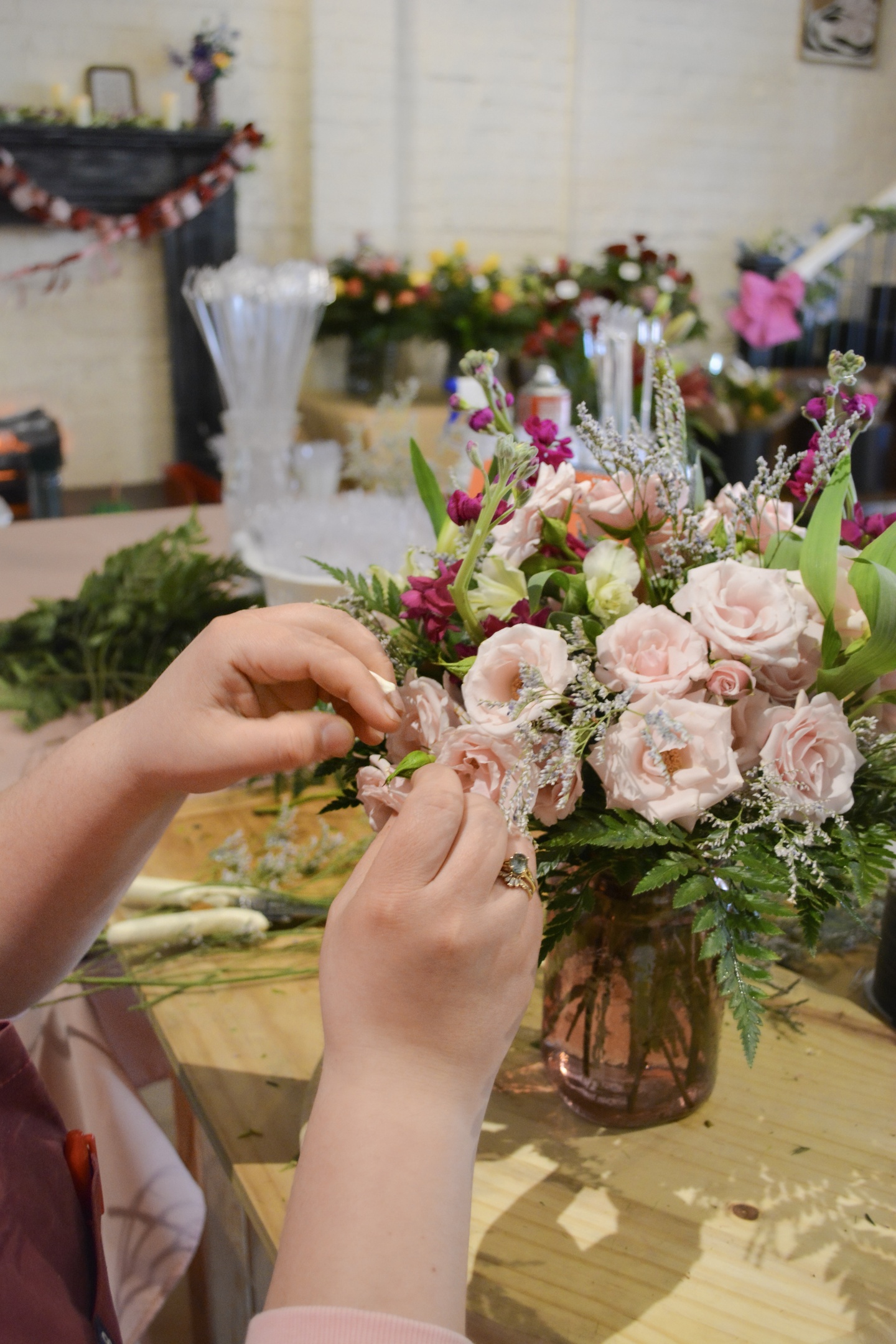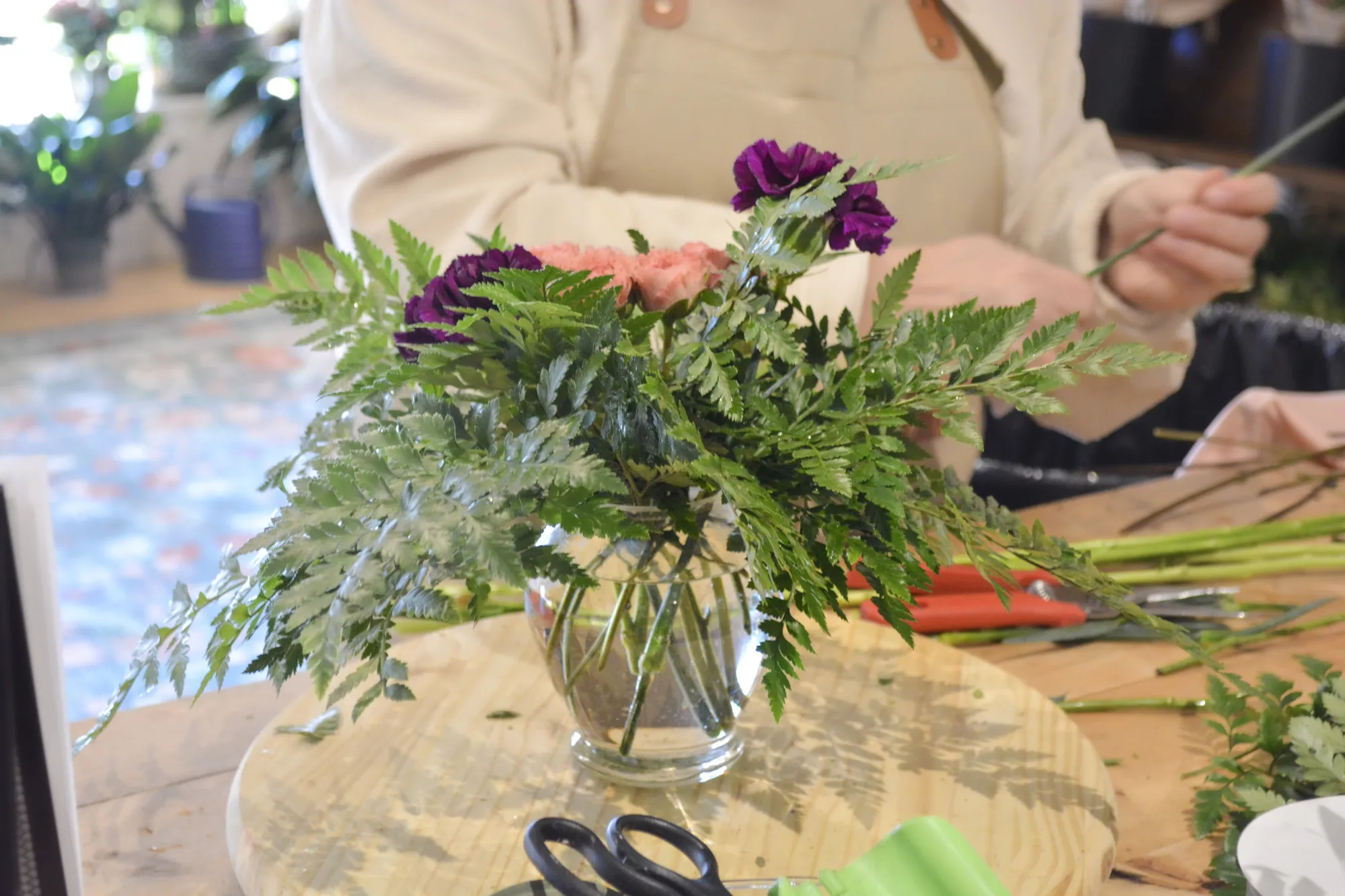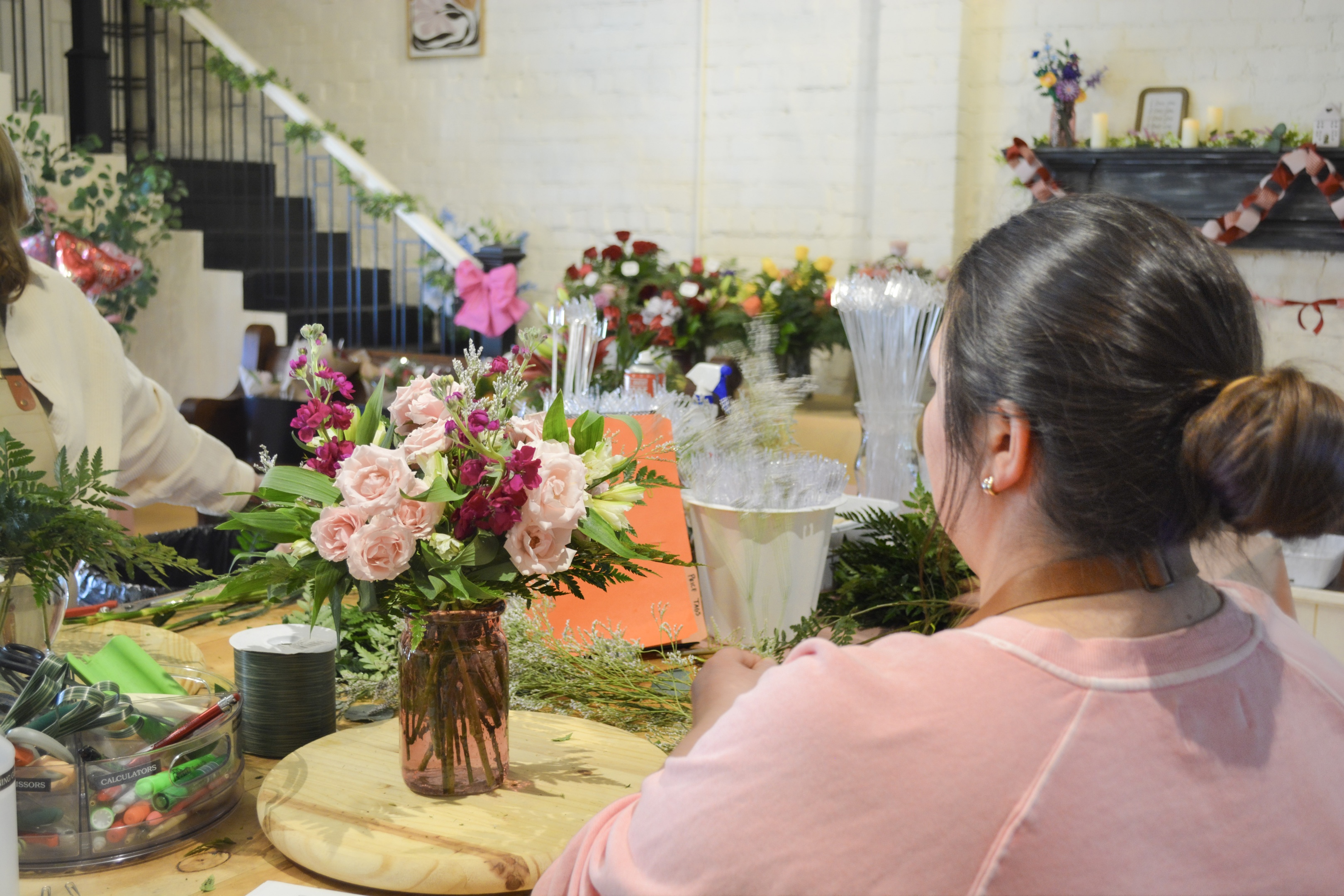 Additional stems or arrangement add-ons are available for purchase during the class.